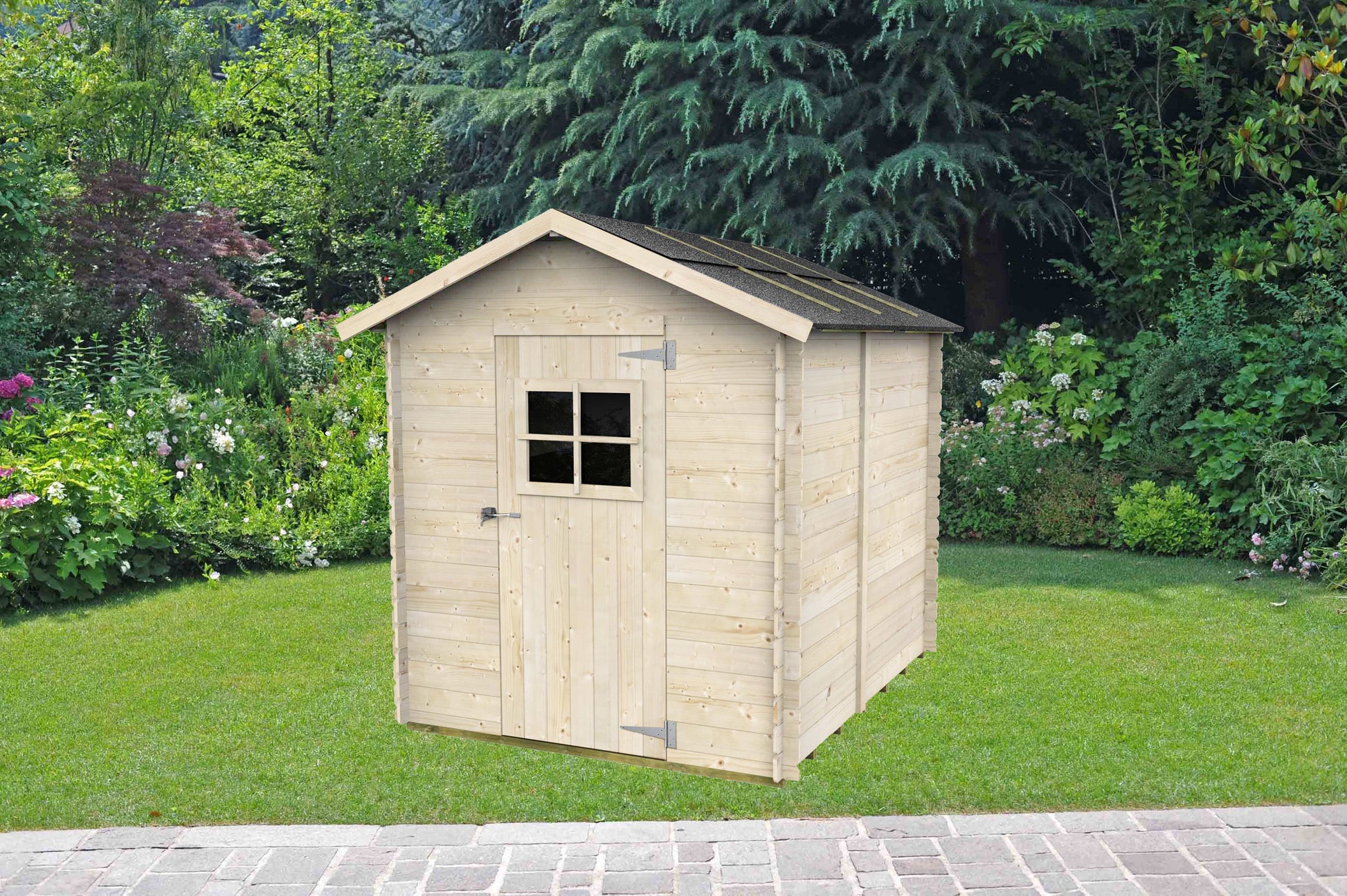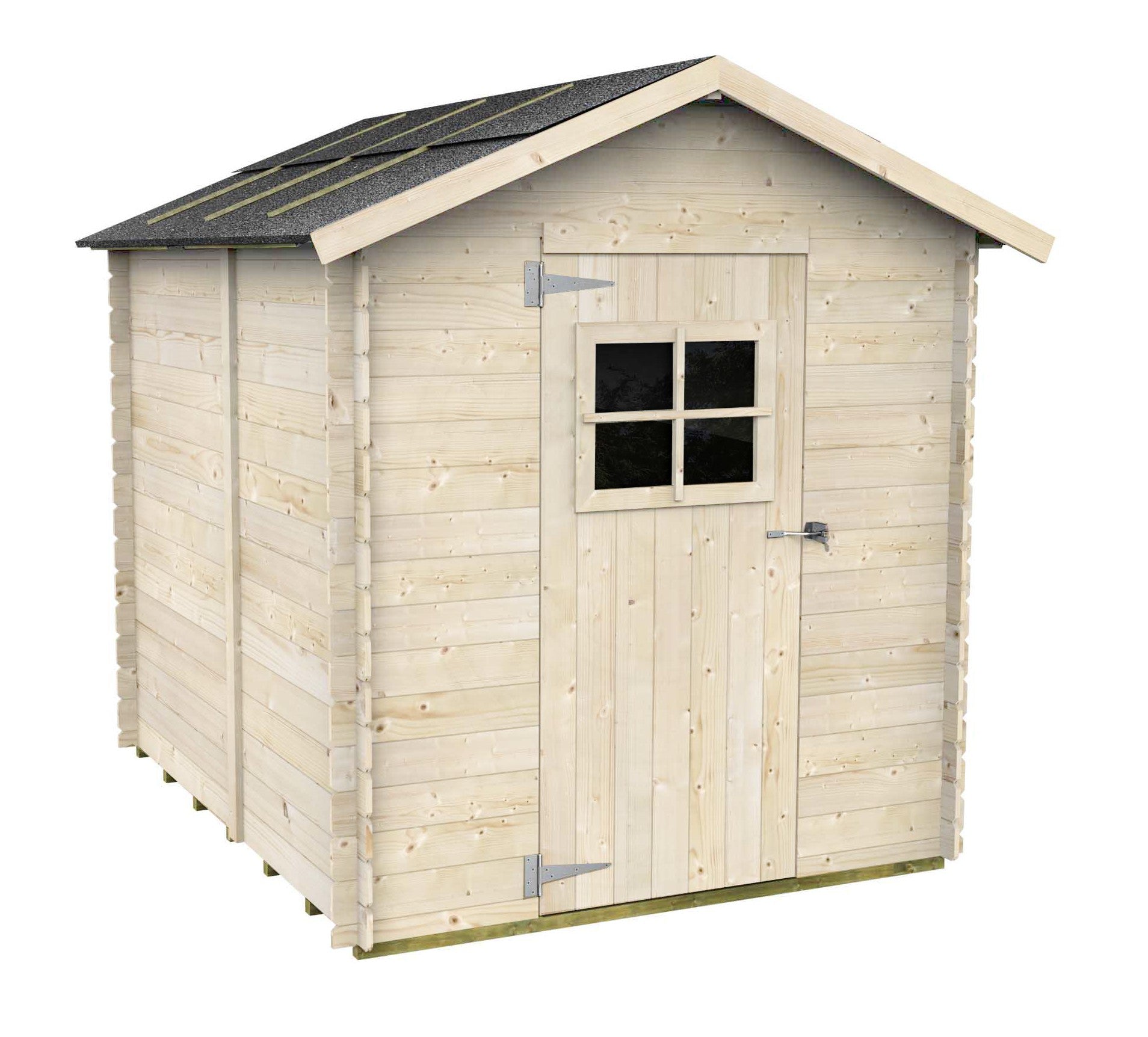 Casetta in legno naturale modello Gaeta , costruita con sistema ad incastro, ideale come ripostiglio per attrezzi, spazio hobby o piccolo ricovero in giardino. Struttura solida, tetto impermeabilizzato, pavimento incluso e porta finestrata con plexiglas.